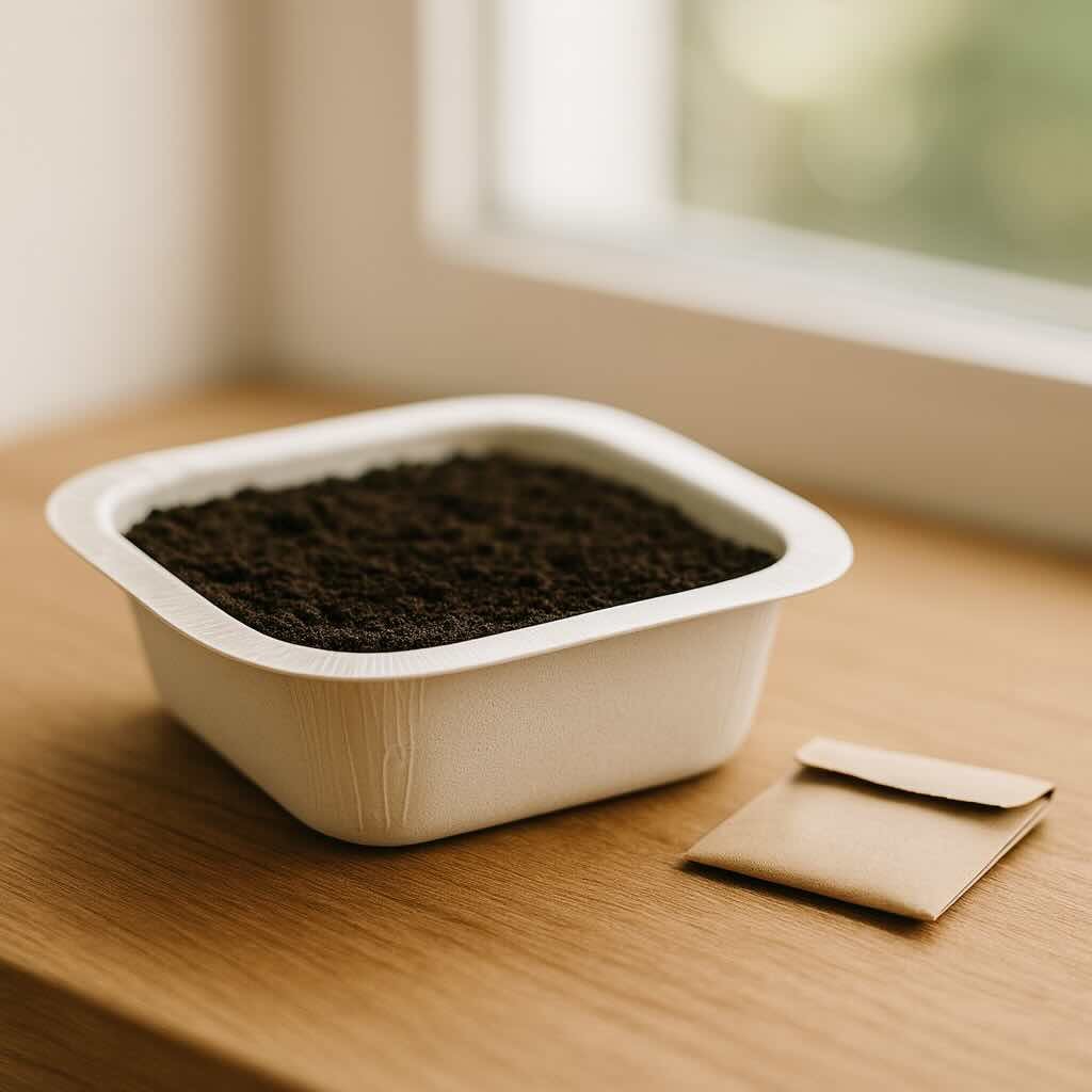 Naše pěstovací miska je vyrobena z materiálu Biopap – ekologického, kompostovatelného a tepelně odolného obalu z obnovitelných zdrojů. Vzniká v Itálii a je bezpečný pro kontakt s potravinami. My jej používáme jako pěstební základnu – díky tomu máte jistotu, že se semínkům daří a zároveň chráníte planetu.